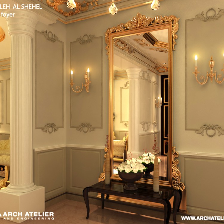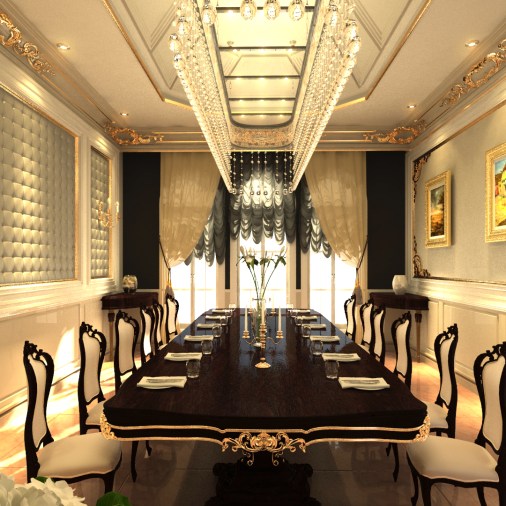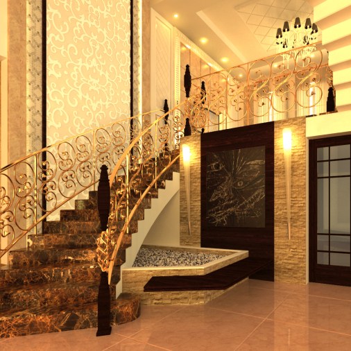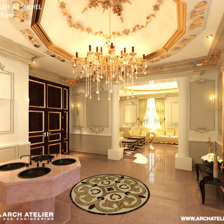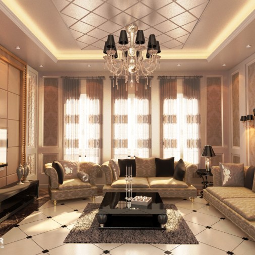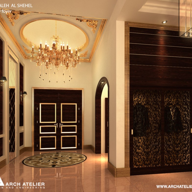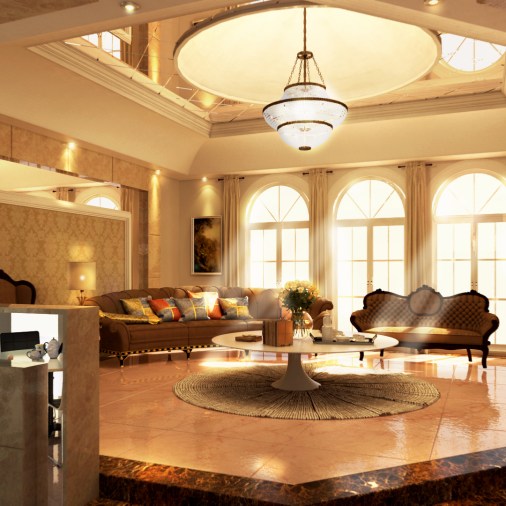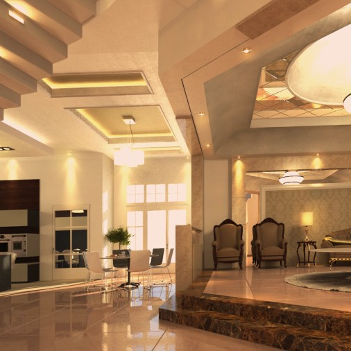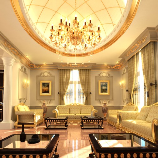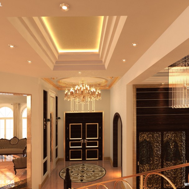 Luxury and classic design is the dominant character in this villa; our concept was to create a villa which emphasized the simplicity and the elegance, while at the same time responding to the costumer’s criteria. This was achieved through the configuration of spaces where we adopted openness and through colors by the repetitive use of light beige, the nuts brown for the furniture and the golden gypsum modeling in the ceilings and the wall decorations as well as reappearing pattern in walls decorations. We also made our design unique by adopting modern design, wooden ceiling, parquet flooring and colors like red in the youth and the kid’s rooms.