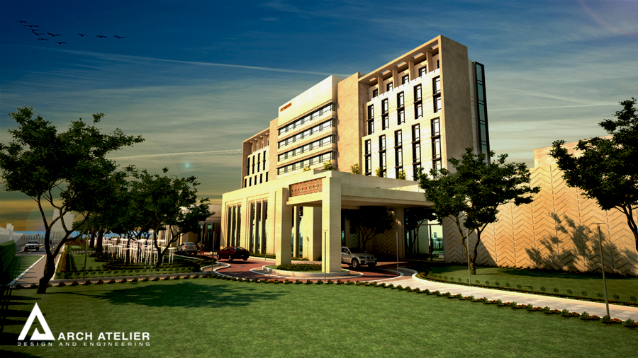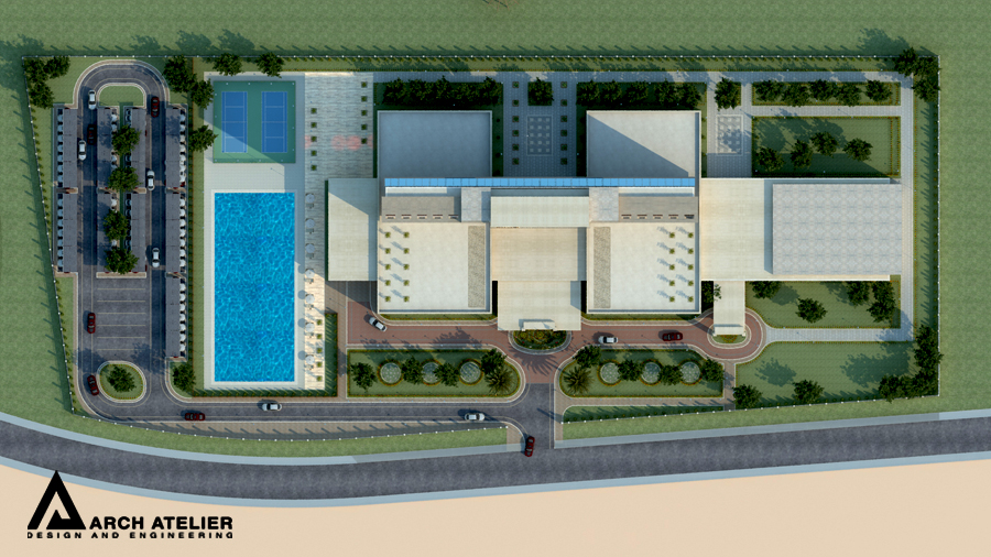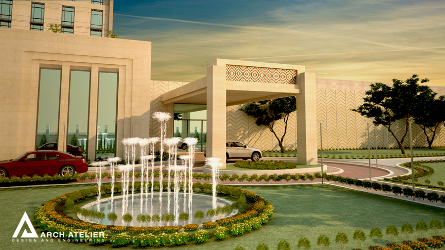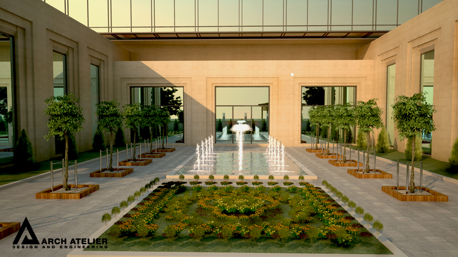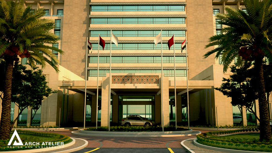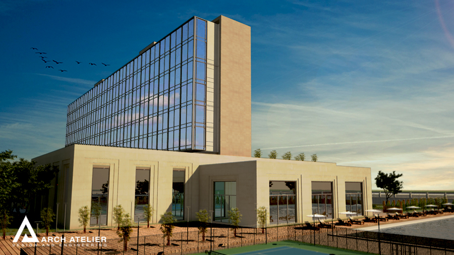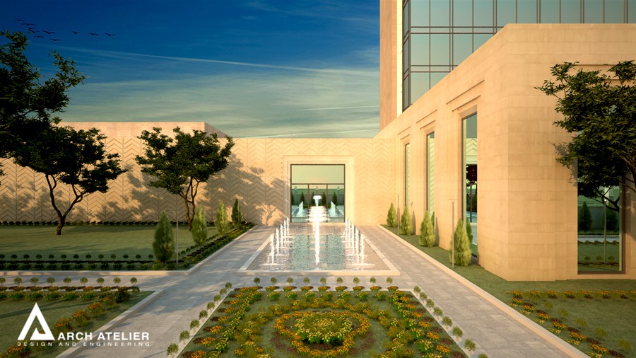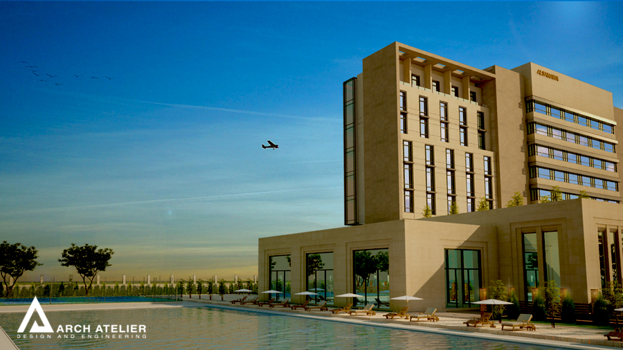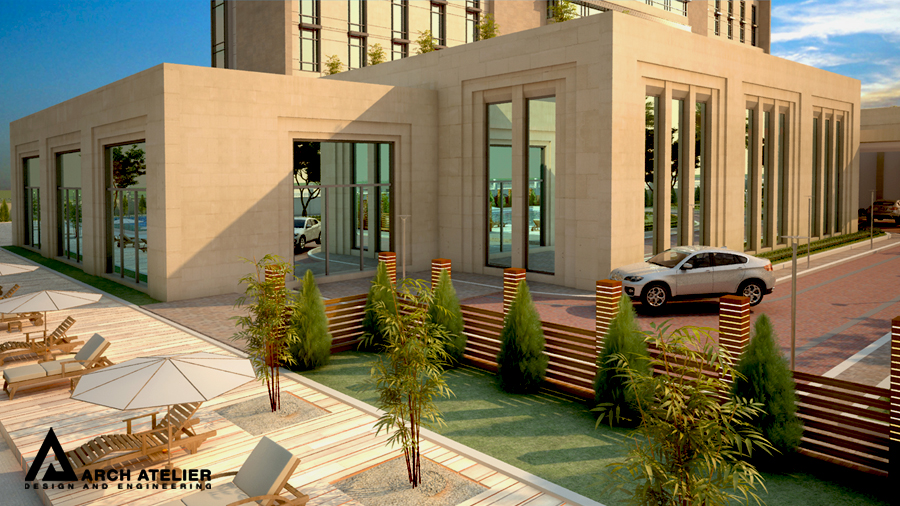 This project is located in Samawa, Al Iraq. It’s a building of 45 rooms distributed into 6 flours with a wide reception , restaurant , spa and swimming pool in the two first floors , with a VIP entrance separated from the main entrance to achieve more privacy to the costumers . the rooms were divided into three categories A(suites ) , B(suites ) in the first three floors and the VIP rooms in the top three levels of the building .